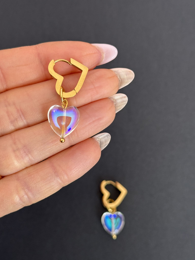 Paire de boucle d’oreille en acier inoxydable et perle de verre